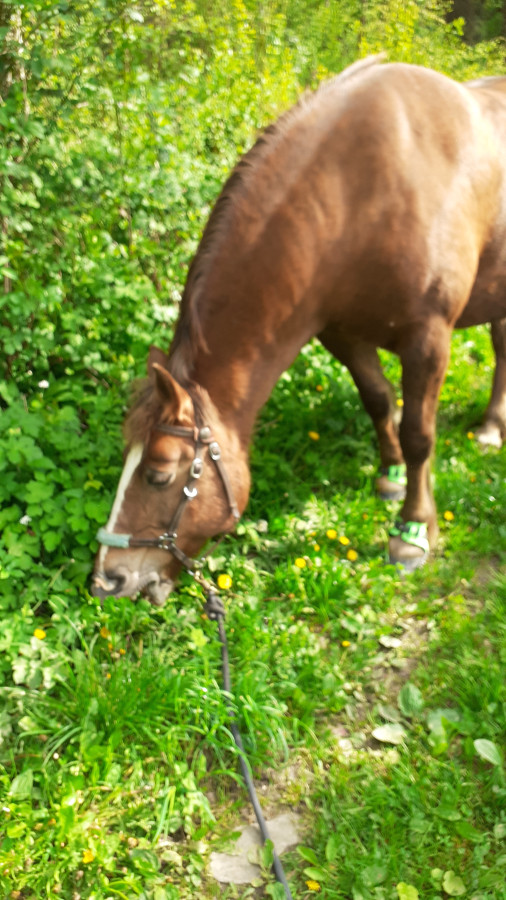 Ya eu deux moments, en descente où il se vautrait, je l'ai repris avec les rênes et il s'est bien retendu. Les crampons semblent être efficaces sur les routes en dénivelé mais on n'avait pas la calèche à tirer.