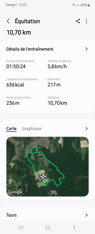 +9.34 km monté avec des trots mais surtout en descente et au retour. (Je crois qu'elle était pressée de rentrer, alors au lieu de m'arrêter au parc comme elle pensait je l'ai fait monter la petite côte au trot pour finir (comme pour le départ) Elle était un peu surprise mais l'a bien fait. Si elle me le refait on ira faire des "trèfles "où on passe au point de départ et on repart....(en plus elle adore les trèfles)