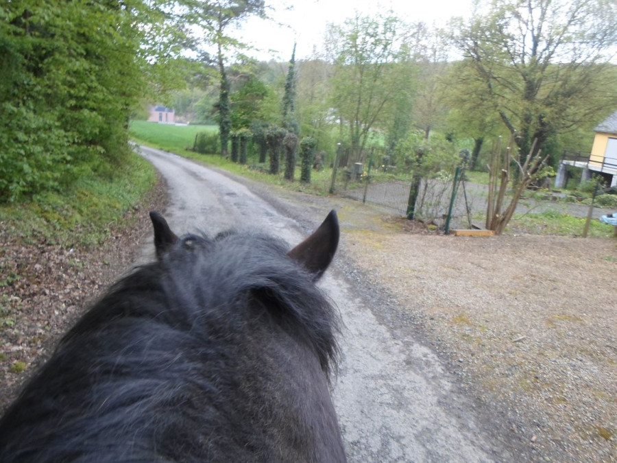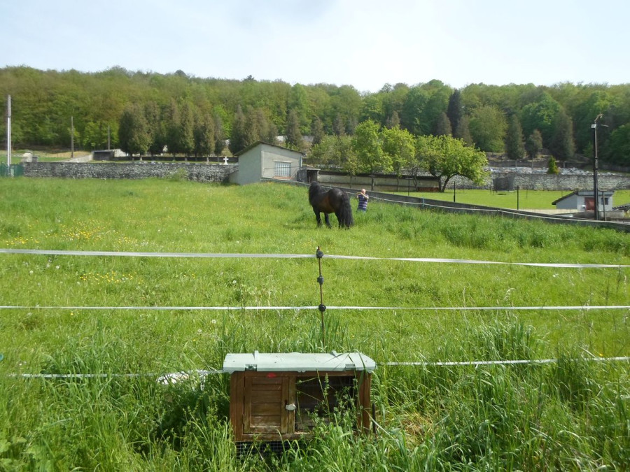 Bon elle est allée seule à l'herbe ; moi chez les copines puis fermer correctement le fond du pré de vacances, pour que les chevaux soient dissuadés de sortir et que l'agri puisse passer en tracteur s'il a envie d'accéder.