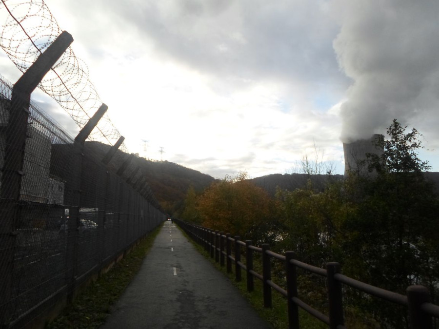 début de la balade, la voie verte longe la centrale atomique (ya l'ancienne centrale à gauche, la nouvelle à droite)