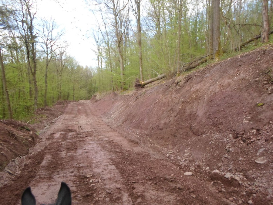 Charmant chemin forestier "aménagé" pour le passage des engins de débardage... mnt c'est une autoroute de bouillasse...