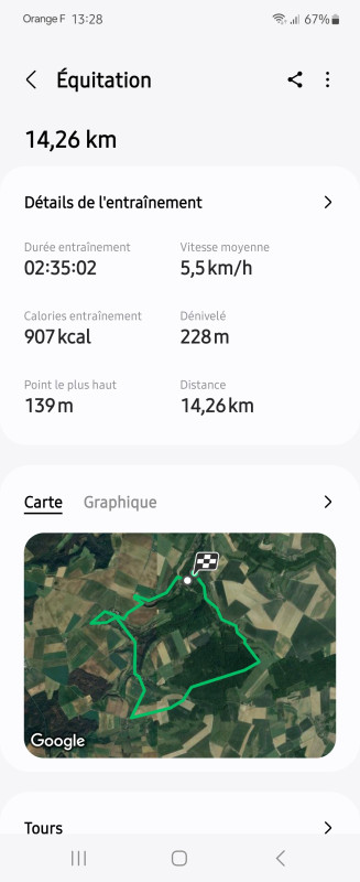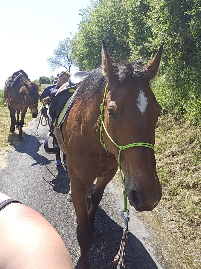 Ça s'est bien passé hormis un chemin qui n'est quasiment plus praticable et où nous avons dû mettre pied à terre 3 fois pour faire du hors piste à cause d arbres au sol qu'on ne pouvait enjamber. Les juments ont bien géré !