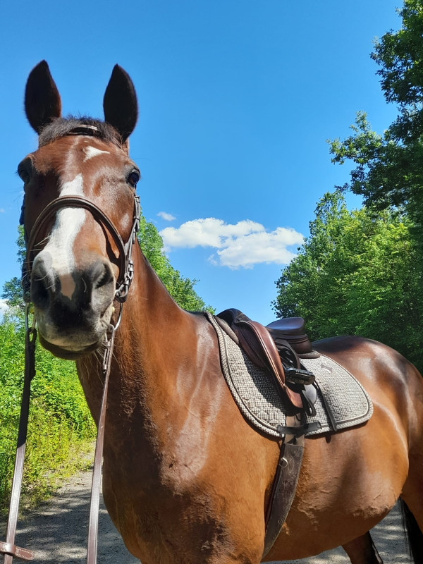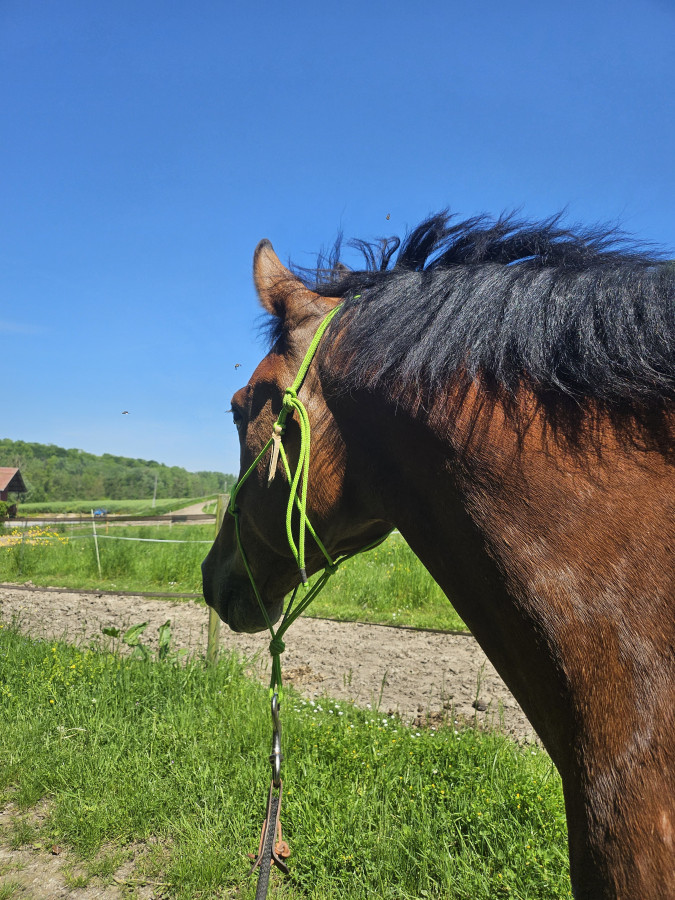 J'étais contente de time car hier le veto est venue hier à cause de son oeill au final elle a un petit ulcere ( 1 mm) et traitement pour la semaine mais pas de contre indication pour monter tant qu'elle a son masque.