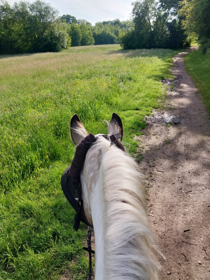 Alors hier, +12 km avec mon quarter de 18 ans, du bon trotting et du terrain varié.
