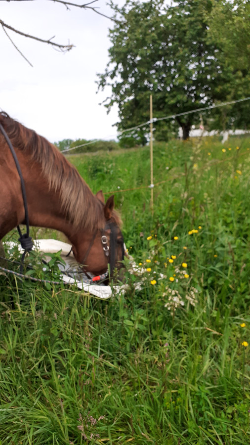 Ma Bs est passée pendant midi et dans mon paddock plein d'herbe ultra-haute elle ne l'avait pas vu il était "caché" ! C'est vrai que certaines herbes sont aussi hautes que moi, lui ne fait que 1m40...