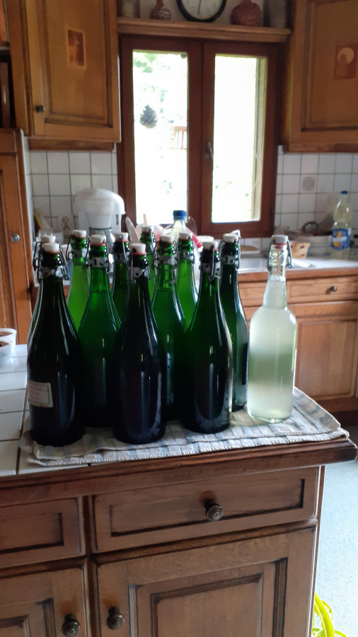 Puis j'ai mis ma "limonade " en bouteille. Plus qu'à ramasser des feuilles de frêne pour faire de la frenette. (Mais c'est plus facile des feuilles il y en a tout le temps)