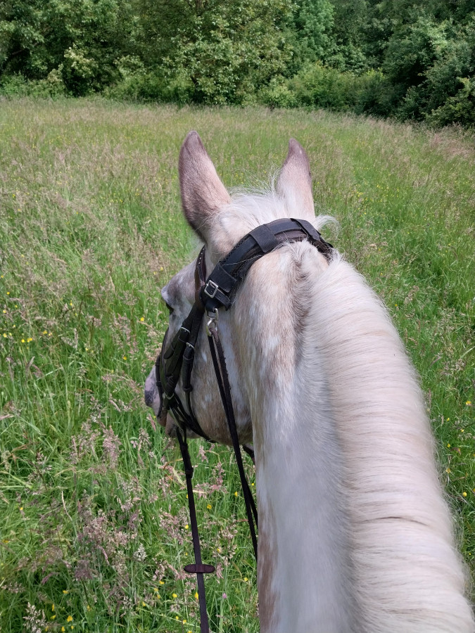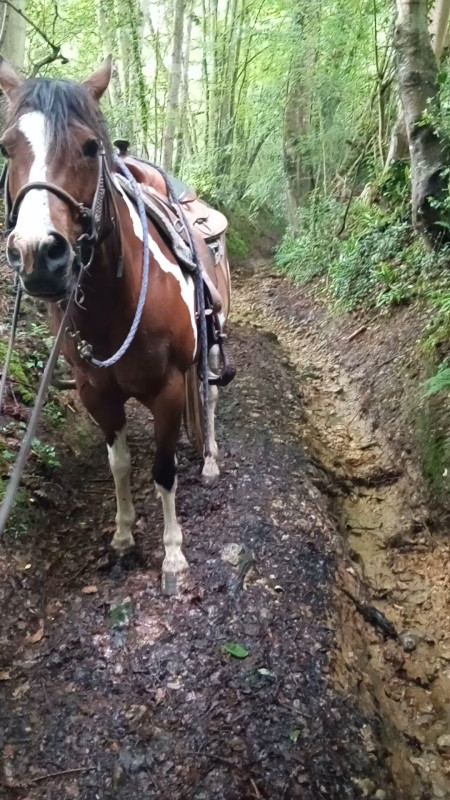 Pour l'aprem, 12,5 km avec mon quarter de 18 ans, un bon trotting avec pas mal d'allures et du dénivelé.
