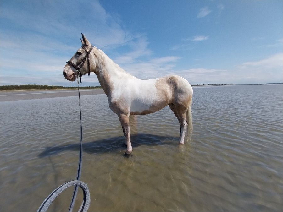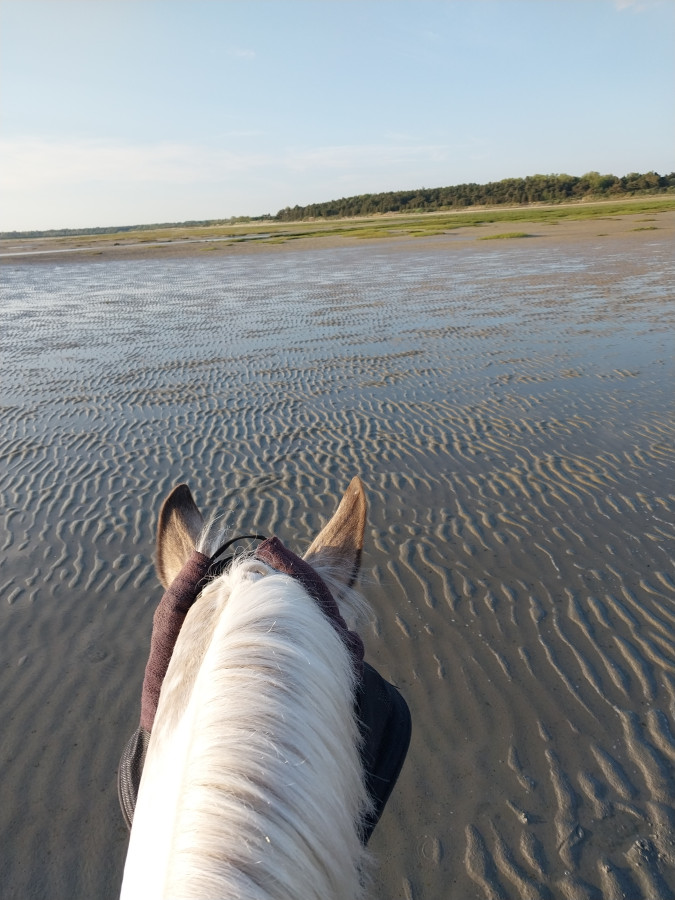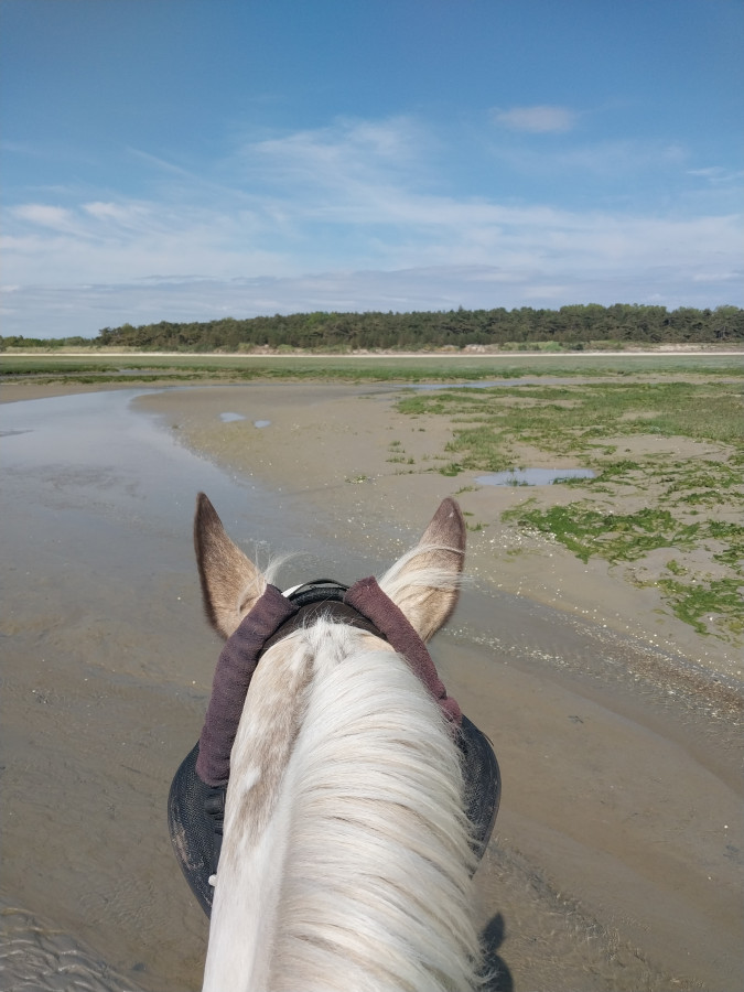 Vendredi on a fait une grande sortie le matin à cheval avec des bons galop, le midi c'était pleine mer mais on est sortie quand même en main pour faire des photos, et le soir sortie plus calme sans grands galops on est rester au galop de travail.