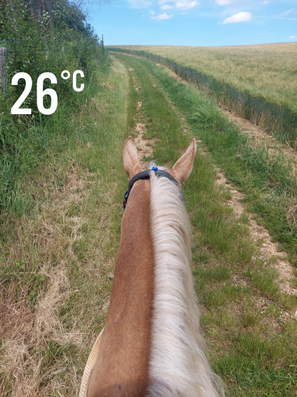 J'avais mis le hackamors pas remis depuis au moins 7,8 mois. Il faisait chaud heureusement un peu de vent pour éviter d'avoir trop chaud.