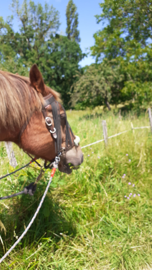 Seulement une vingtaine de kms cette semaine, il a fallu intégrer les chevaux en troupeau, voilà c'est fait. Nous avons un joli petit "troupeau" de 6 chevaux qui se régalent dans leur nouveau pré.