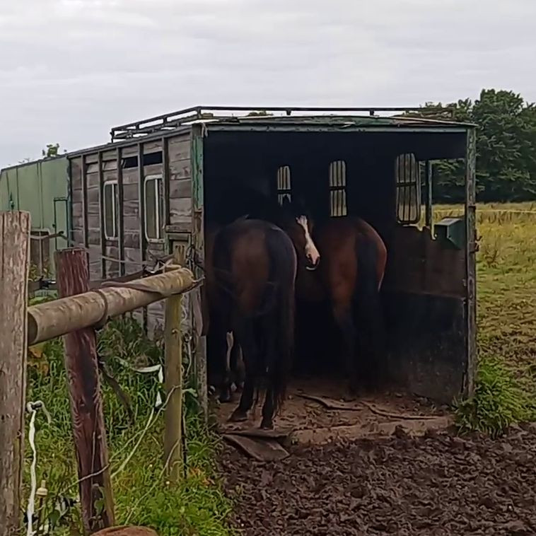 et sinon ce matin mes juments et l'hongre avaient décidé de faire un tétris dans le van/abris 2 places
