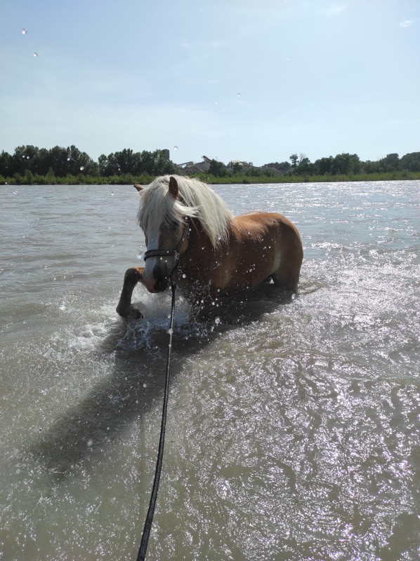Encore à l'eau, j'crois qu'on va y aller un jour sur deux c'est plat donc ça me fait même du bien au dos