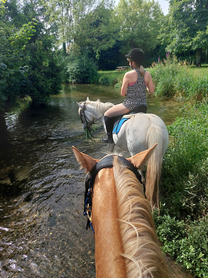 Balade tranquille entre bois et rivière kara n'avait pas été monté depuis 1 mois et avec cette chaleur c'est sur pour elle. Mais vieux poney était en forme et contente de se promener.