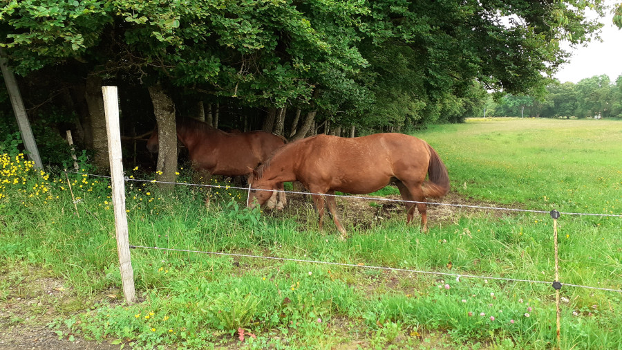 Les juments ont quand même des arbres pour se mettre à l'abri si jamais.