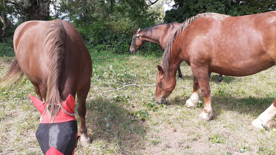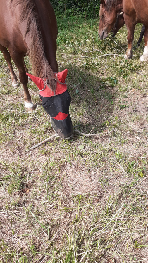 Il ne regarde même plus les pommes même les petites... mêmes celles qui lui pendent sur le dos et la croupe quand il se met sous les branches pour échapper aux mouches... haaa le manque de dents a du bon des fois !
