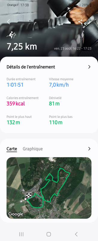 +4,5 km à pieds avec un vent quo souffle déjà fort (50 km/h en rafale), ça va être la seule sortie de la journée vu le coup de vent et l'orage qui se préparent pour cet après-midi.