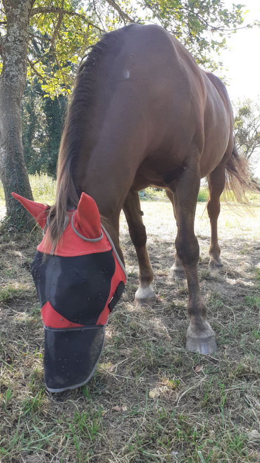 Ce matin Pascal va passer le broyeur dans 2 paddocks et à midi je les remets aux Box, ils pourront soit s'abriter sous les sapins, soit dans les box au frais. Puis cet AM promenade prévue avec lotus.