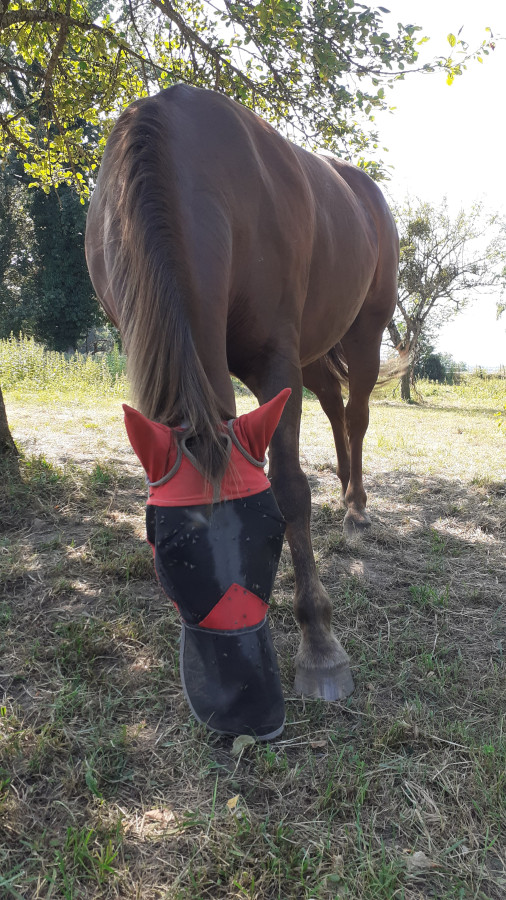 Retour aux écuries mini coup de douche puis cataplasme d'argile sur toute la ligne du dessus
