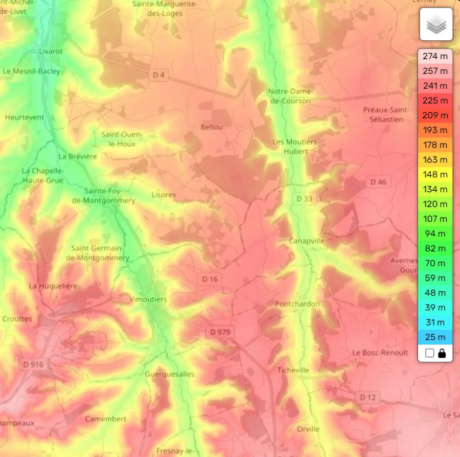 Normandie, zone plutôt plate (je suis originaire du Rhône-Alpes ) mais tout de même 800 m de dénivelé à passer de colline en colline... La topo de mes 24 km :