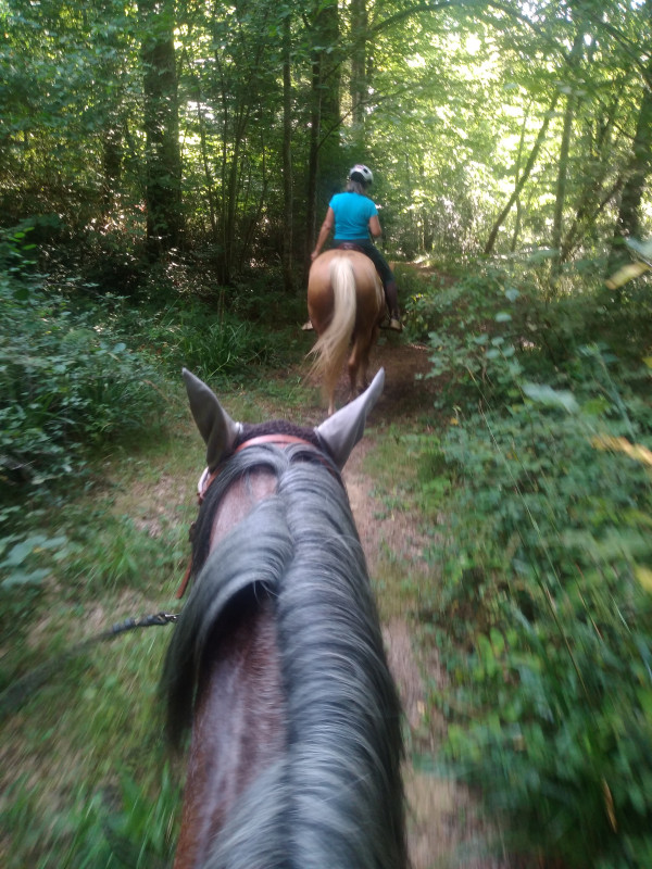 On a était dans le grand Bois, +17kms avec Praline et N* avec son Touco. Chouette balade qui fait du bien même s'il faisait lourd, heureusement dans les bois ça a été mais les chevaux ont quand-même bien sués donc ils ont eu droit a une bonne douche au retour !