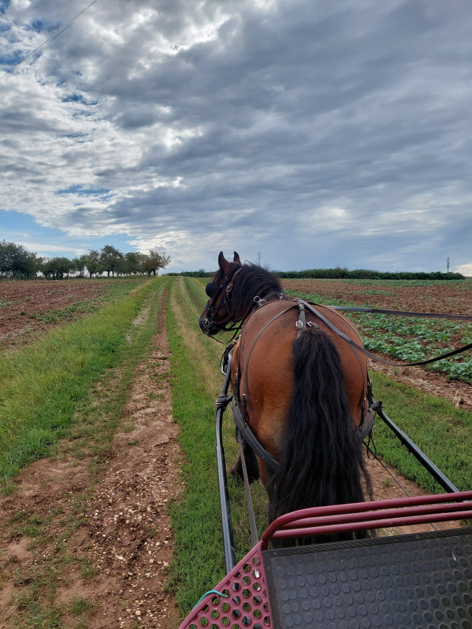6km en attelage avec athos, il a encore bien plu cette nuit. Certains chemins ont été plus difficiles athos à du tracter la calèche mais ça s'est bien passé.
