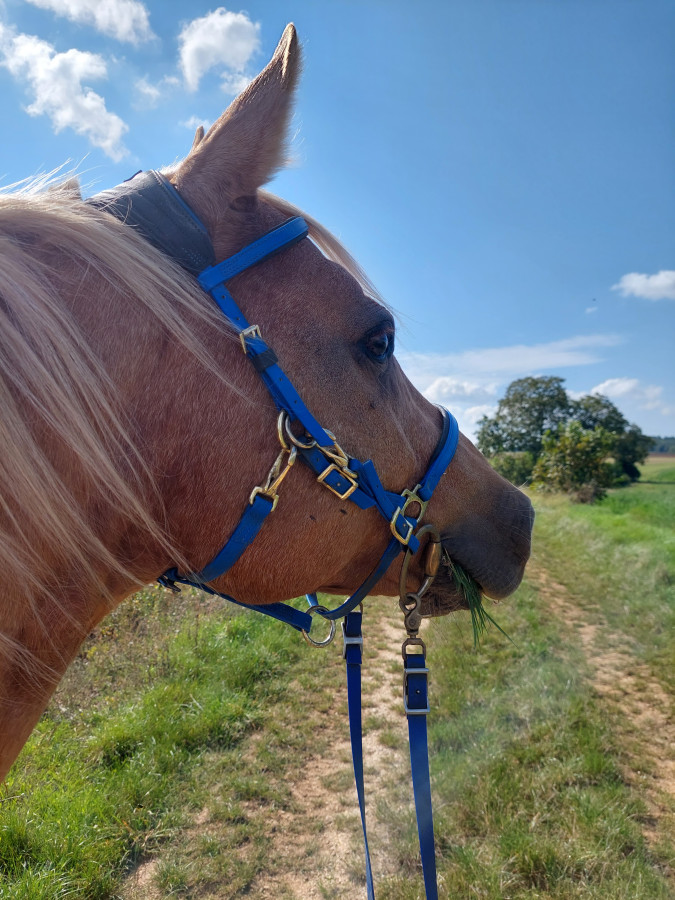 Puis emmené Cisko chez sa vieille copine, on est allé faire un bout de voie verte en selle avec Lotus histoire de voir si ça fonctionne (un ou 2 trucs à améliorer) puis reprise de Cisko et retour au pré; Les 2 ont mangé leur picotin et voilà, un peu + de 5 km.