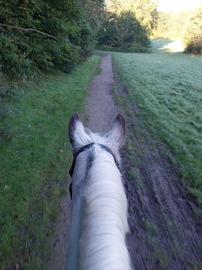Pour Tex c'était balade au pas ce matin, j'avais mise le couvre rein car il fait très froid d'un coup. Et demain reprise de la saison de concours avec du dressage.