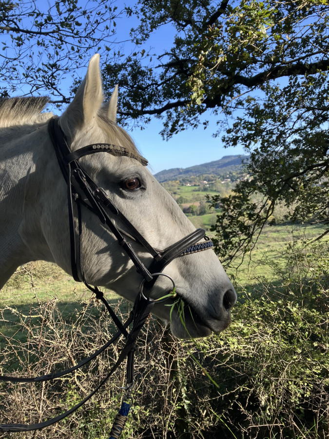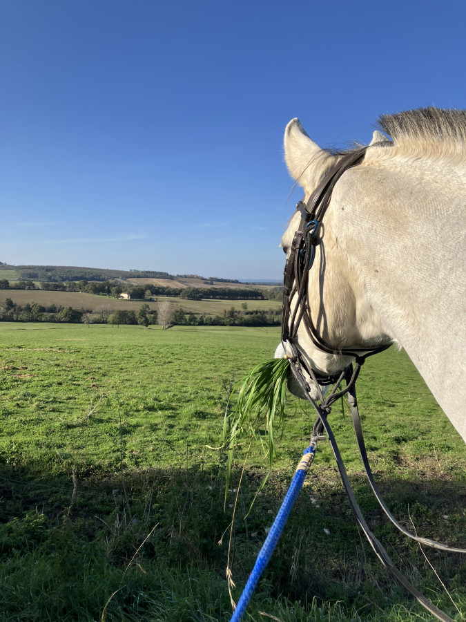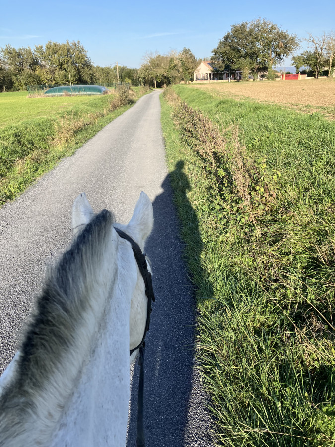 Time était bien puis elle a vu un cheval au galop sur un chemin plus loin, ça l'a énervée excitee et rendue anxieuse. Elle tenait pas en place et a enchaîne les crottins de stress....j'ai beaucoup marché à pied puis on a quand même pu rentré calmement.