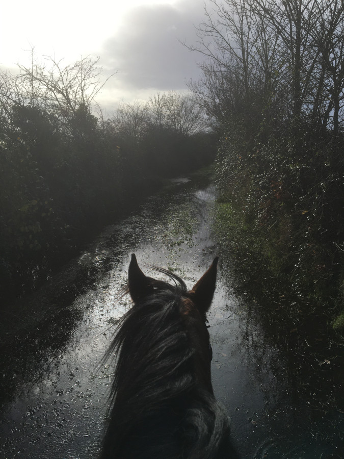 Hier balade en fin de matinée avant que le vent ne se lève trop. On est parti avec 3 autres chevaux puis retour en solo car les autres voulaient prolonger la balade, mais Vainqueur ayant eu mois de novembre à ne rien faire, je ne voulais pas trop lui en demander. Il a été très cool au retour, malgré le vent qui se levait et la séparation avec les autres ! On a pas mal trotté et galopé, ça faisait du bien même si ça lui montait un peu à la tête à la fin