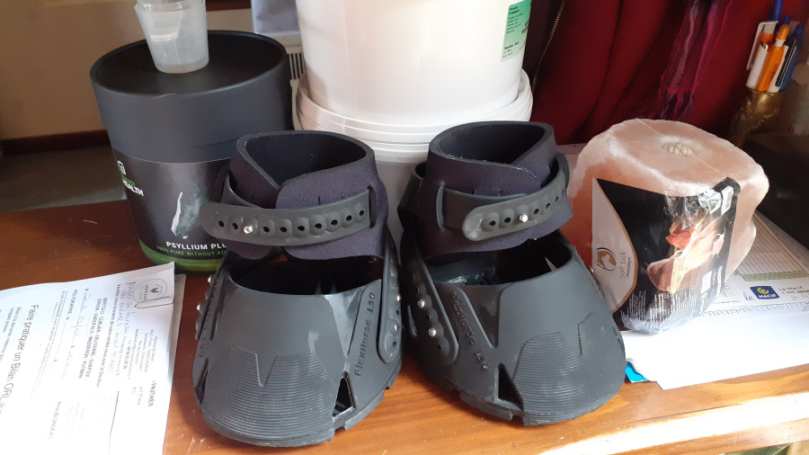 Avant de commencer je vais lui expliquer qu'il y a sûrement du sang dans les lignes blanches car entre l'absence de parage, les pinces en forme de skis et l'obésité/ sûrement une fourbure latente... Ca ne va pas être joli là-dessous...