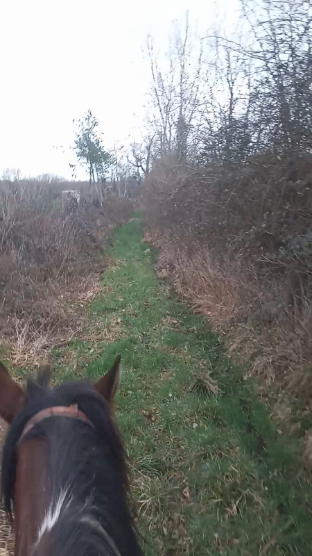 Ensuite il est parti et j'ai amené Lotus dans le pré de la douane, mon nouveau parc et future acquisition. J'ai passé un coup de fil à ma belle-soeur qui n'était pas là mais m'a autorisée à y amener son cheval. J'aime autant gérer toute seule que devoir se mettre d'accord pour y aller toutes les 2 en même temps