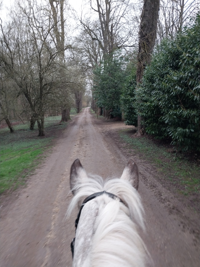 Je suis partie en solo mais c'était top j'ai faite beaucoup de trot et 2 galop assez long. La jument est gêner avec ses chaleurs donc la ligne droite ça lui a fait du bien.