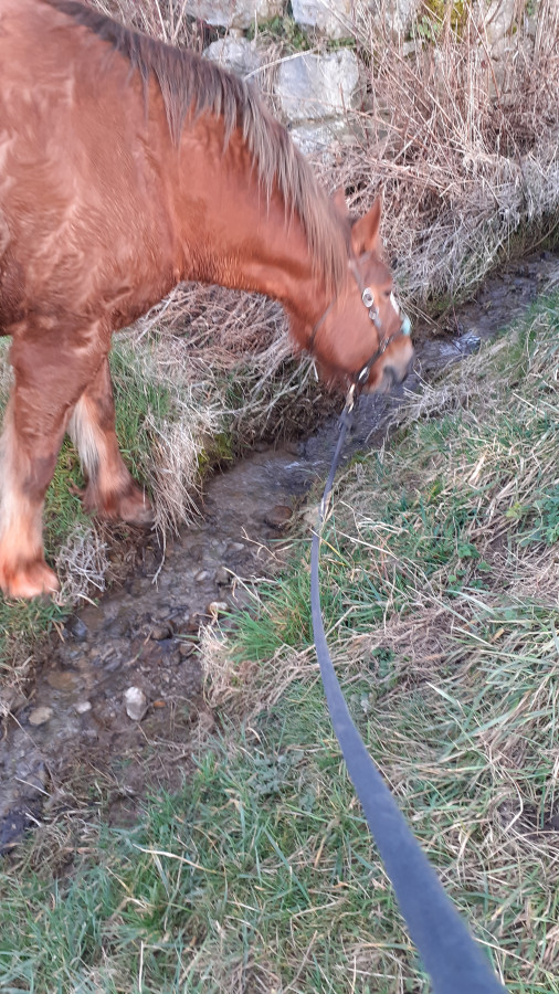 Qui, elle ne veut pas trotter sur la route mais sur les chemins à cailloux oui. Mais Mia sur les cailloux c'est pas possible.