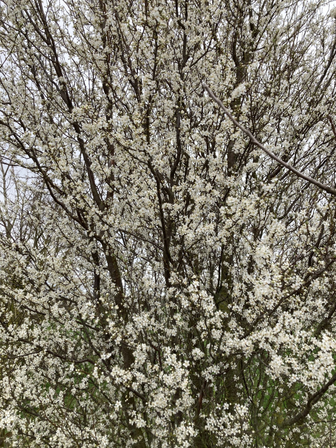 Hier nous avons fait 8 kms sous un ciel nuageux mais on a croisé les pruniers en fleurs et ça sent troooop bon !