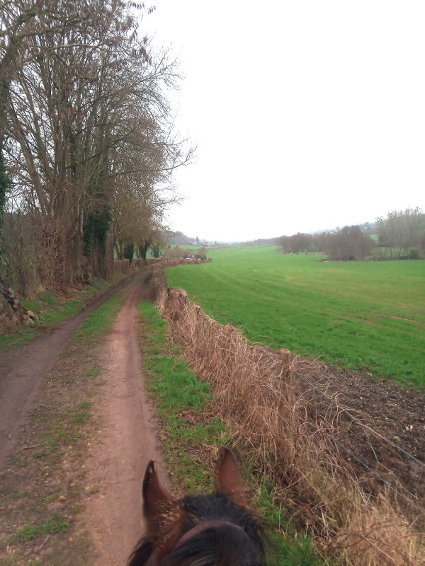 On s'est fait un bon galop aller/retour sur les 1,5 km de terrain gras et plat entourés de prés (voir photo)