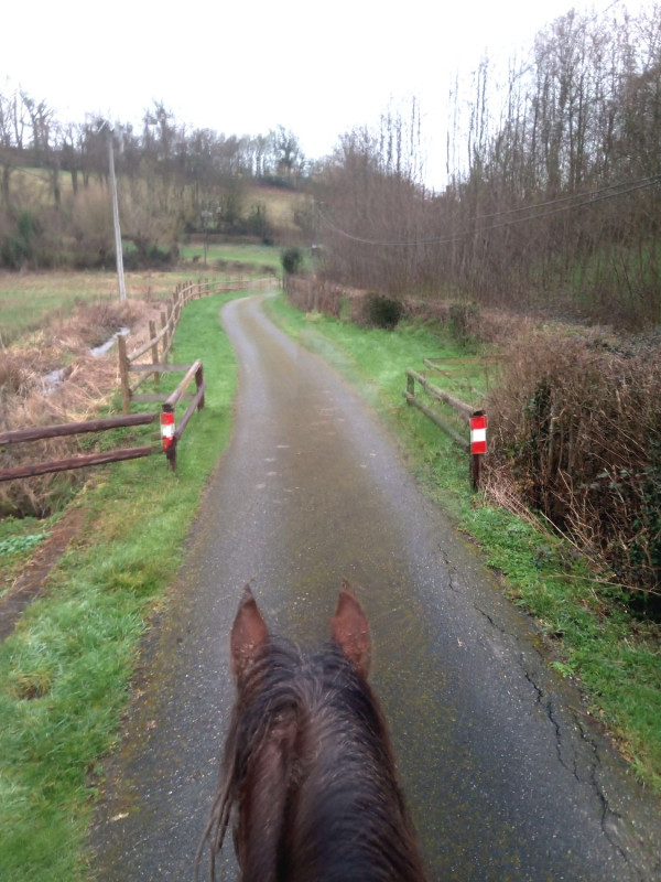 Une nouvelle sortie samedi avec une cavalière des écuries. On a tenté de viser la fenêtre météo favorable mais à la moitié il a commencé à pleuvoir et ça ne s'est jamais arrêté... bon on a fini gentiment notre boucle et on est rentré se mettre au chaud et au sec après.