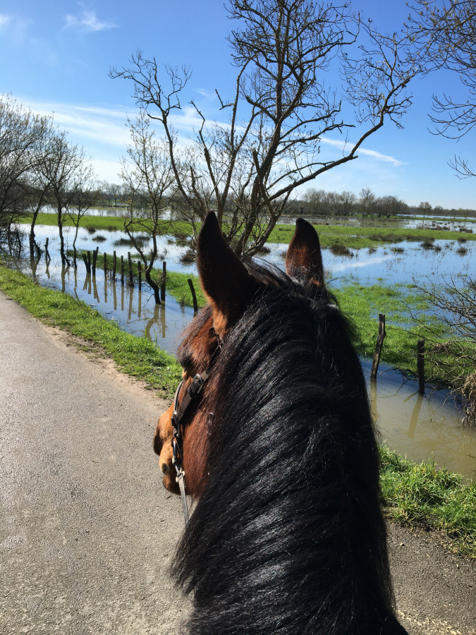 Puis quand on est revenue aux écuries, la trotteuse était de nouveau sortie et prête pour partir en balade.