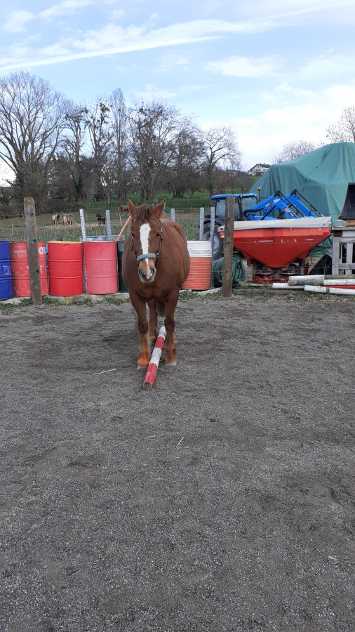 + 1.5 km en longe après avoir fait 2 tours de rond de longe puis une bonne séance de bodywork et un petit tour de barre au sol à la demande de Mia.