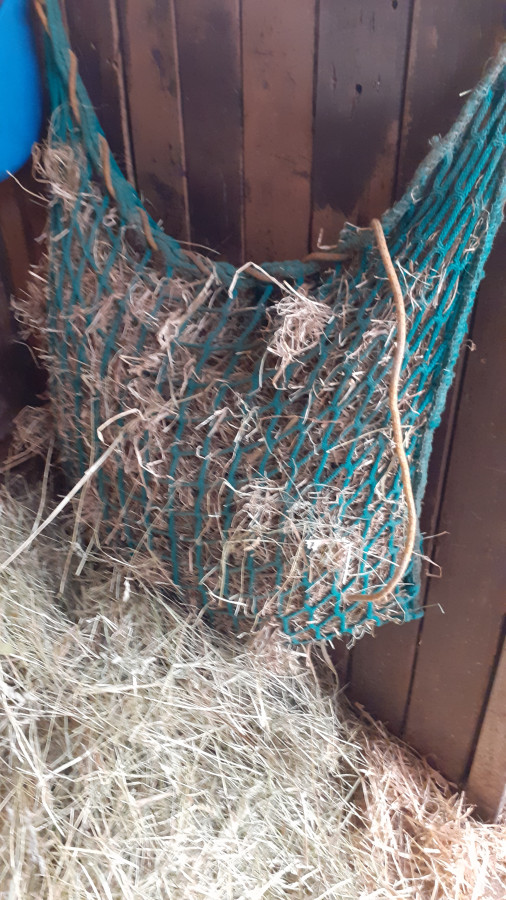 Le foin de hier était tel quel dans le filet, je l'ai vidé