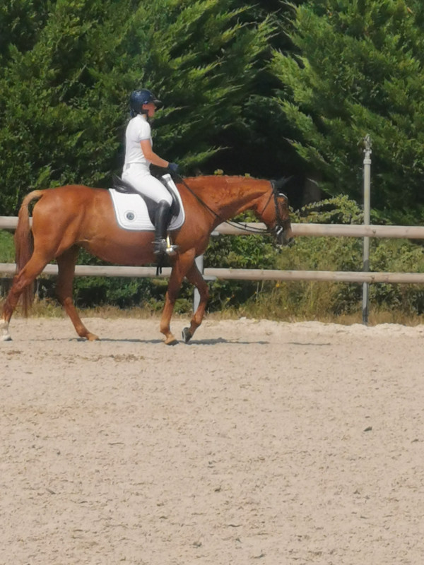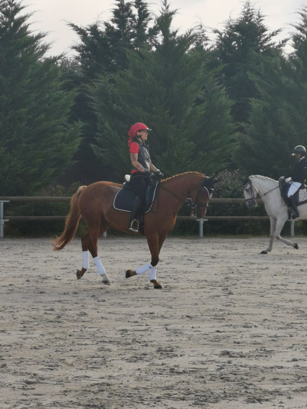 Je suis GIGA dégoutée, rebelotte la détente en 2-2, le cheval est super mignon, il est à l'écoute. On part dérouler, tout se passe bien, à peine un petit retard sur la musique du trot mais je rattrape. Arrive mon doubler final (AC, je vous les choses en grand !) , je me rend pas compte tout de suite que le cheval dévie de la ligne du milieu, je fais mon arrêt sur la ligne des 15m, complétement de travers...