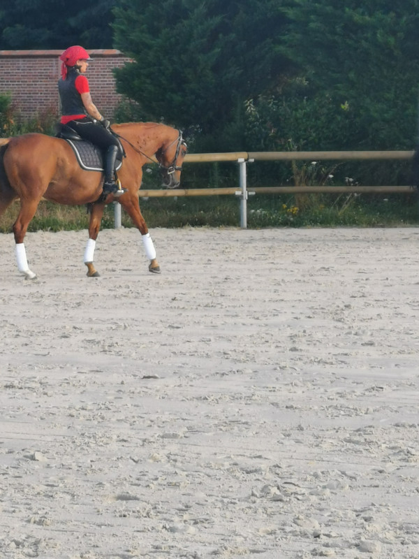 Elle part demander si le numéro 19 veut bien passer avant moi, la personne accepte donc me voila a détendre en express... heureusement qu'il y a 15 min à pied pour aller au manège, j'ai trotté direct puis travailler quelques exercices avant de me présenter en piste... Ca se passe bien, le cheval shoote un plot mais passe la porte quand même. Je dois faire un arrêt entre 2 plots, le cheval s'arrête, littéralement, 5 cm les antérieurs avant le plot... j'ai pas osé redemander une foulée... on finit le tour sans autre soucis. Je ressors contente mais contrariée par l'organisation du paddock.