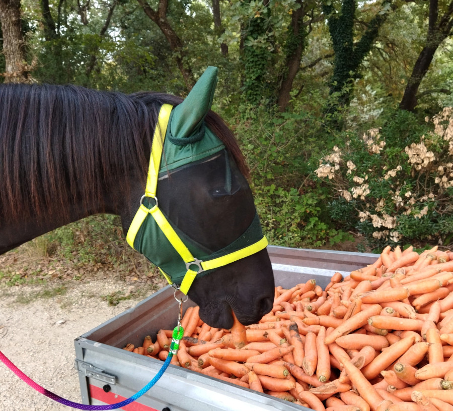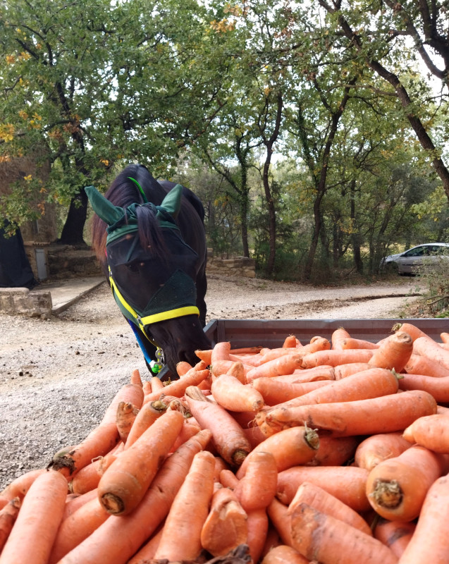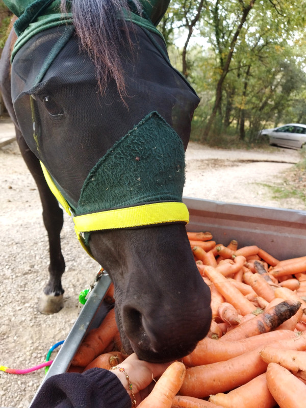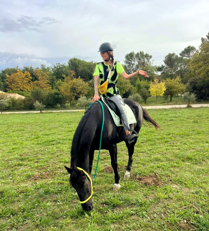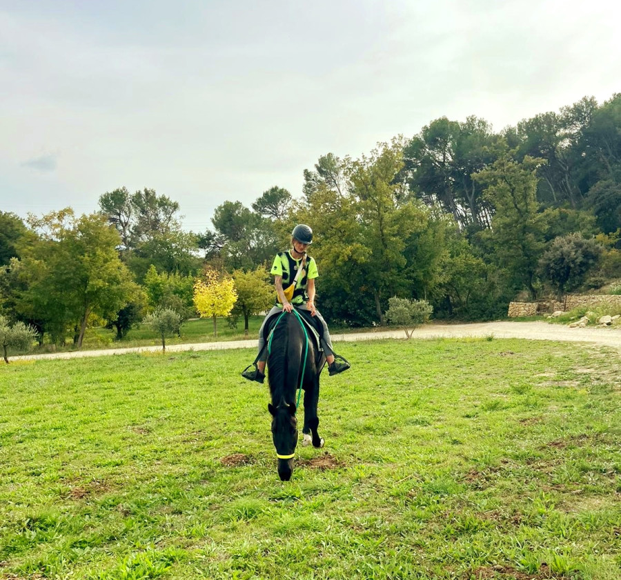 On redescend à l'écurie, dans le chemin je redemande le trot et je le garde jusqu'arrivées dans la carrière, allé on continu on fait un petit tour au trot dedans et on ressort dans le calme,