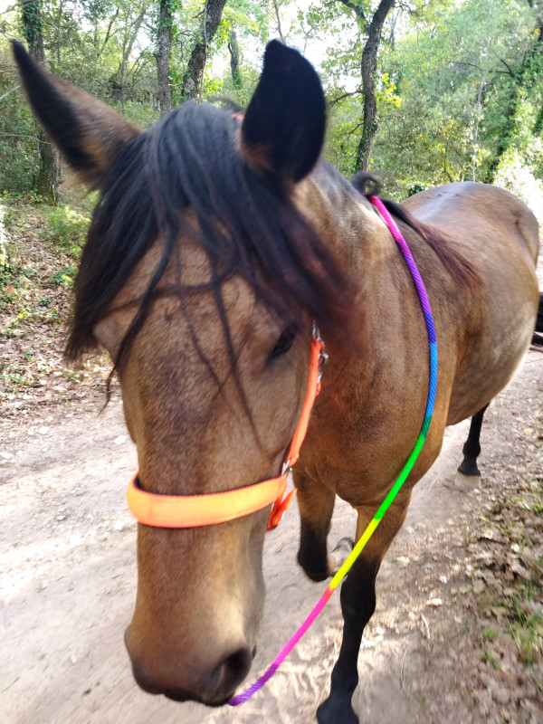 Obligé d'inaugurer tout ça évidemment ! On est parti en balade avec mister Caïd, on est parti 1h10 pour 6km, tranquillou, au pas, c'était sympathoche