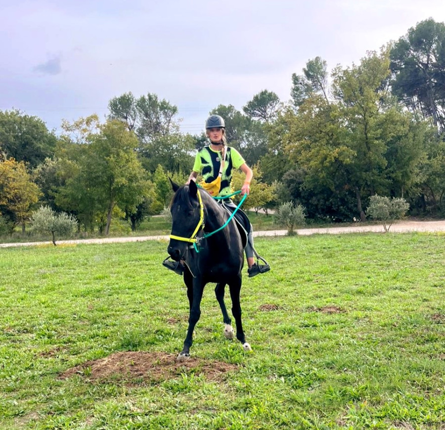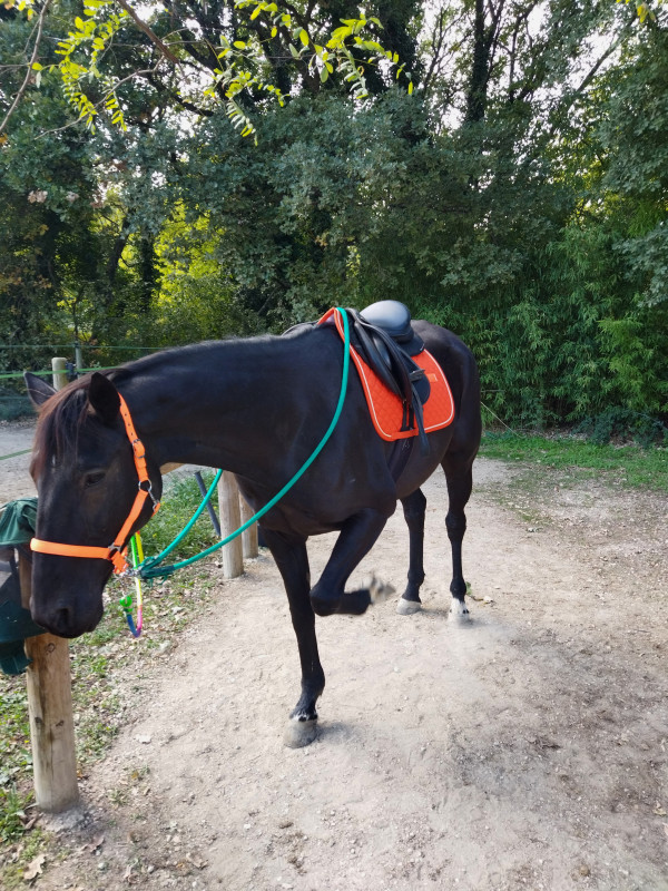Je tente de demander le trot...elle ne veut pas...secoue la tête...tente de se mordre comme elle fait....j'essaie d'insister mais en vain, elle me fait quelques foulées et j'arrête je ne veux pas la braquer, on continu au pas jusqu'à ce qu'elle soit 'bien'!!!