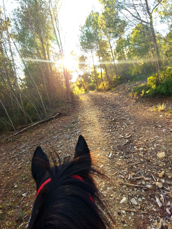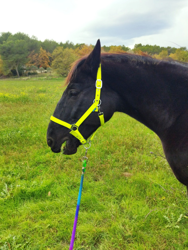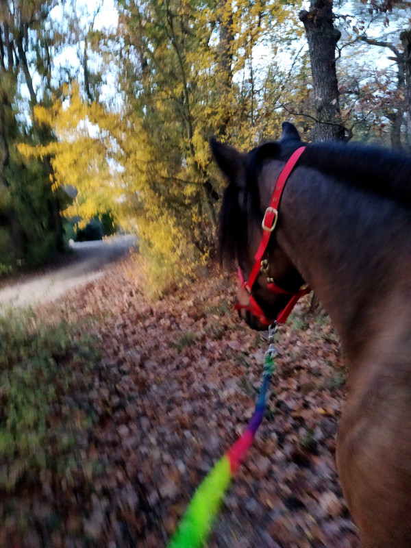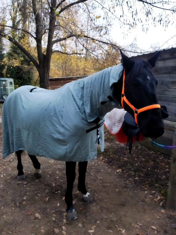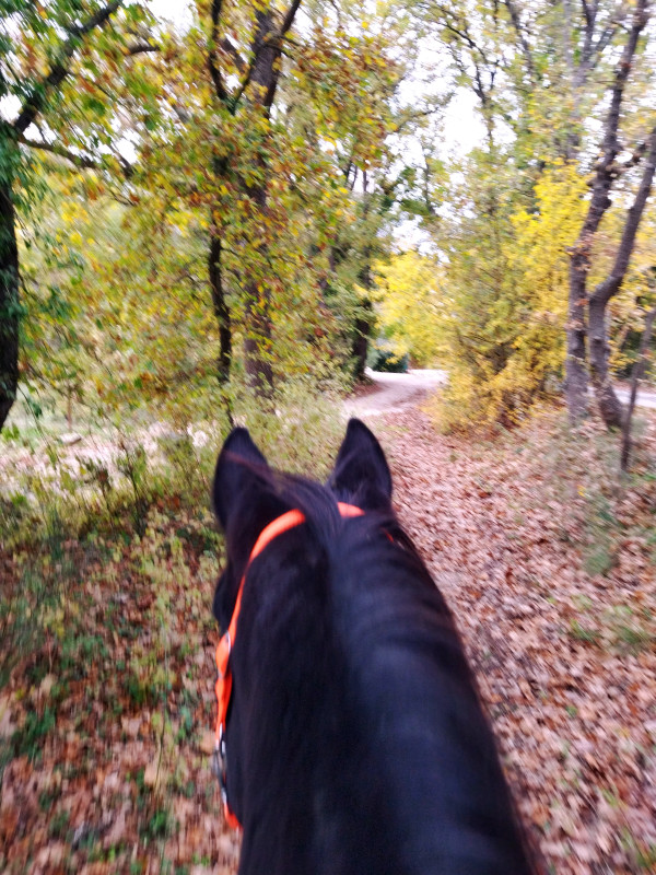 (il faut dire que Mr est beaucoup plus fin au niveau de l'écoute,de sa facilité pour les transitions, au début c'était difficile pour lui rien que de repasser au pas etc, ça lui coûtait, il me paraît moins raide puisque qu'on peut vraiment trotter quasi 'partout', j'ai l'impression que maintenant c'est bien plus simple, c'est top!!!) une première petite victoire pour nous encore ça, yououuuuh!