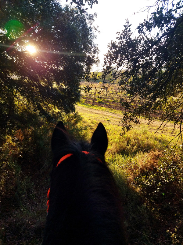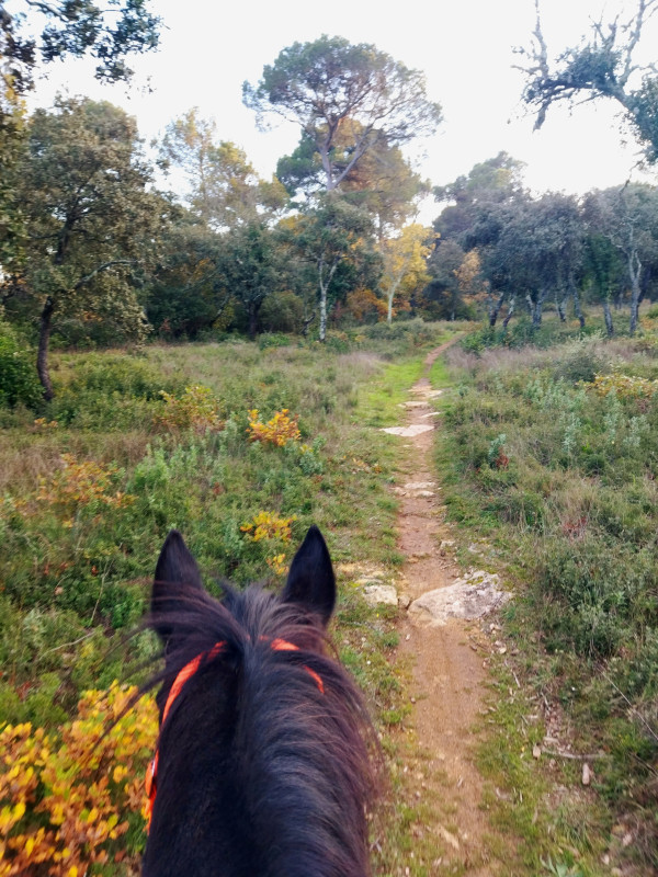 on s'est même un peu emballés, c'était trop court, il a fallu que je tourne vite à gauche qu'il ne continu pas tout droit dans les broussailles(on y passe juste au pas)