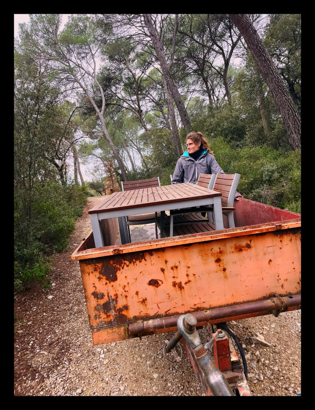 Avant de partir je lui ai mis son licol orange fluo plutôt que rouge, car j'avais mis un tapis foncé car je pensais qu'il allait être crado ou mouillé(finalement non), histoire qu'on nous voit un peu plus, j'ai entendu des coups de feus donc au cas ou(mais ça va on a croisé personne !!!)