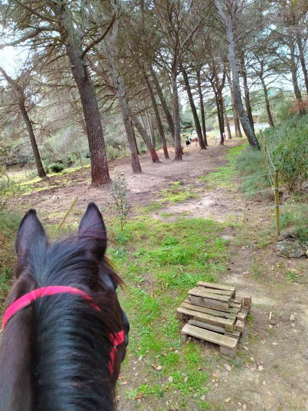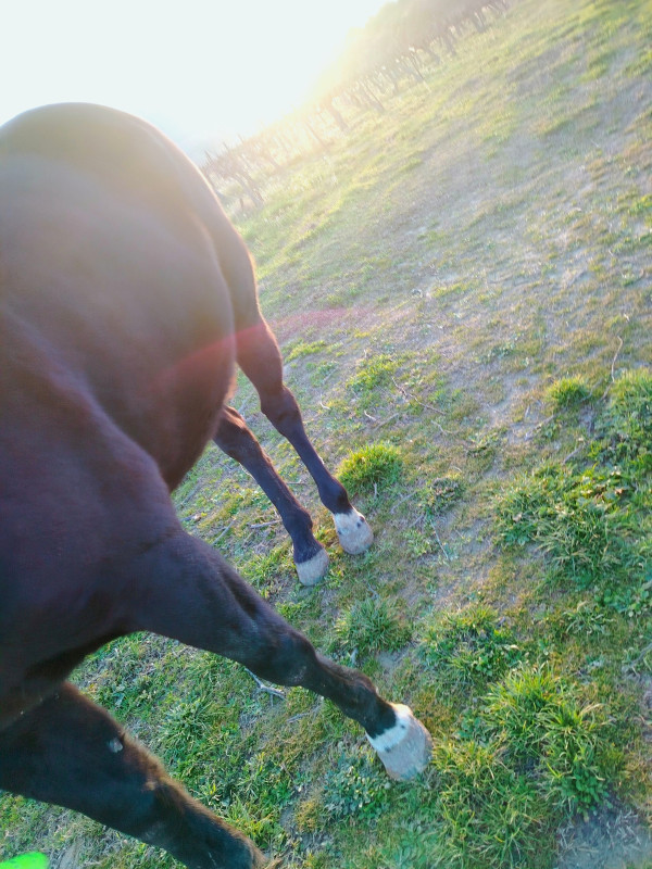 moi même pas eu le temps de réagir...je perds un étrier...le tel à la main(va savoir je réussi à le ranger dans mon sac ahah), j'ai plus de rênes rien...je réussi à me caler en arrière coûte que coûte...