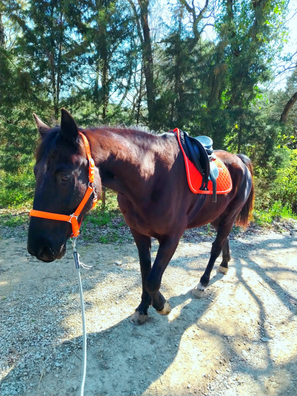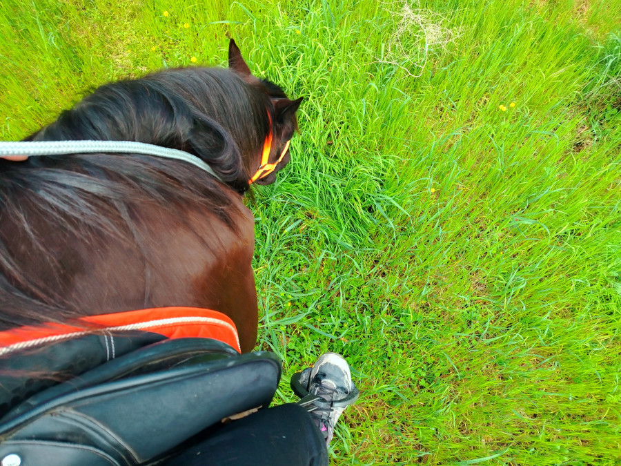 Caïd a été très très chouette et sympa, ma pépite d'amour, moi j'étais pas très équilibré, difficile de me caler, entre gérer le tel qui restait pas en place, mes étriers beaucoup trop long, la bestiole qui s'active fort...c'etait quelque chose...
