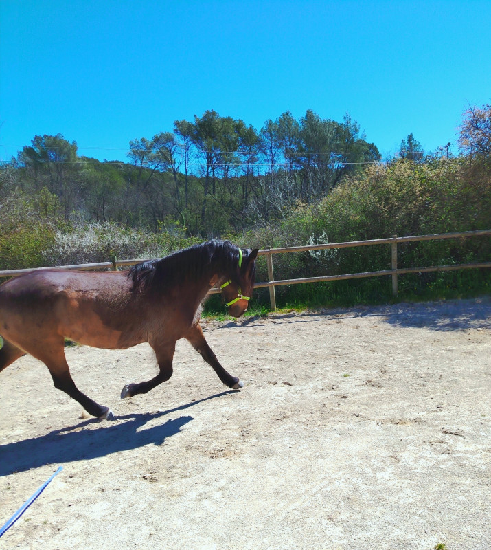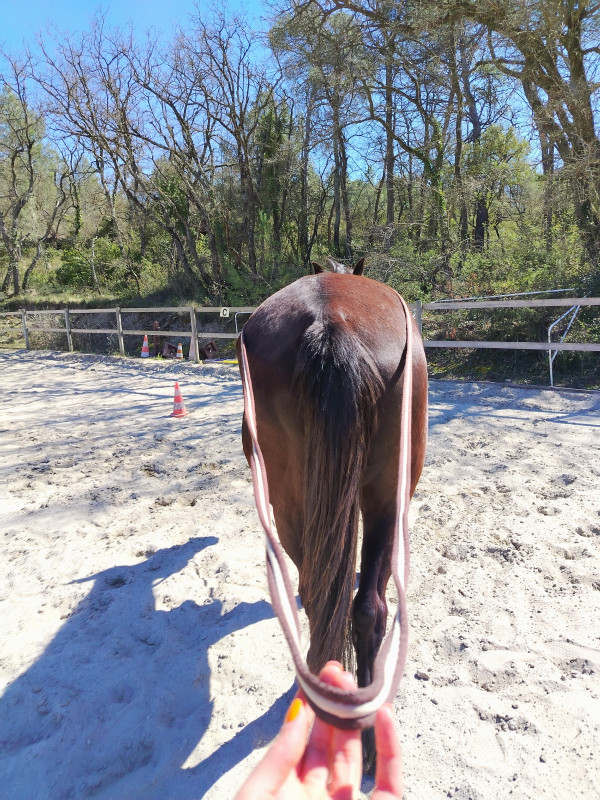Au début il ne comprenait pas du tout ce que je lui voulais derrière ses fesses, la longe qui tombe sur ses membres etc...il essaie de venir à moi en tournant moi qui tourne autour de ses fesses...panique sans paniquer pour le coup de comprendre ce qu'il se passe...ahah bref c'était assez drôle...